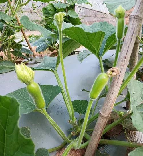 圖1、雙蔓整枝、幼瓜。